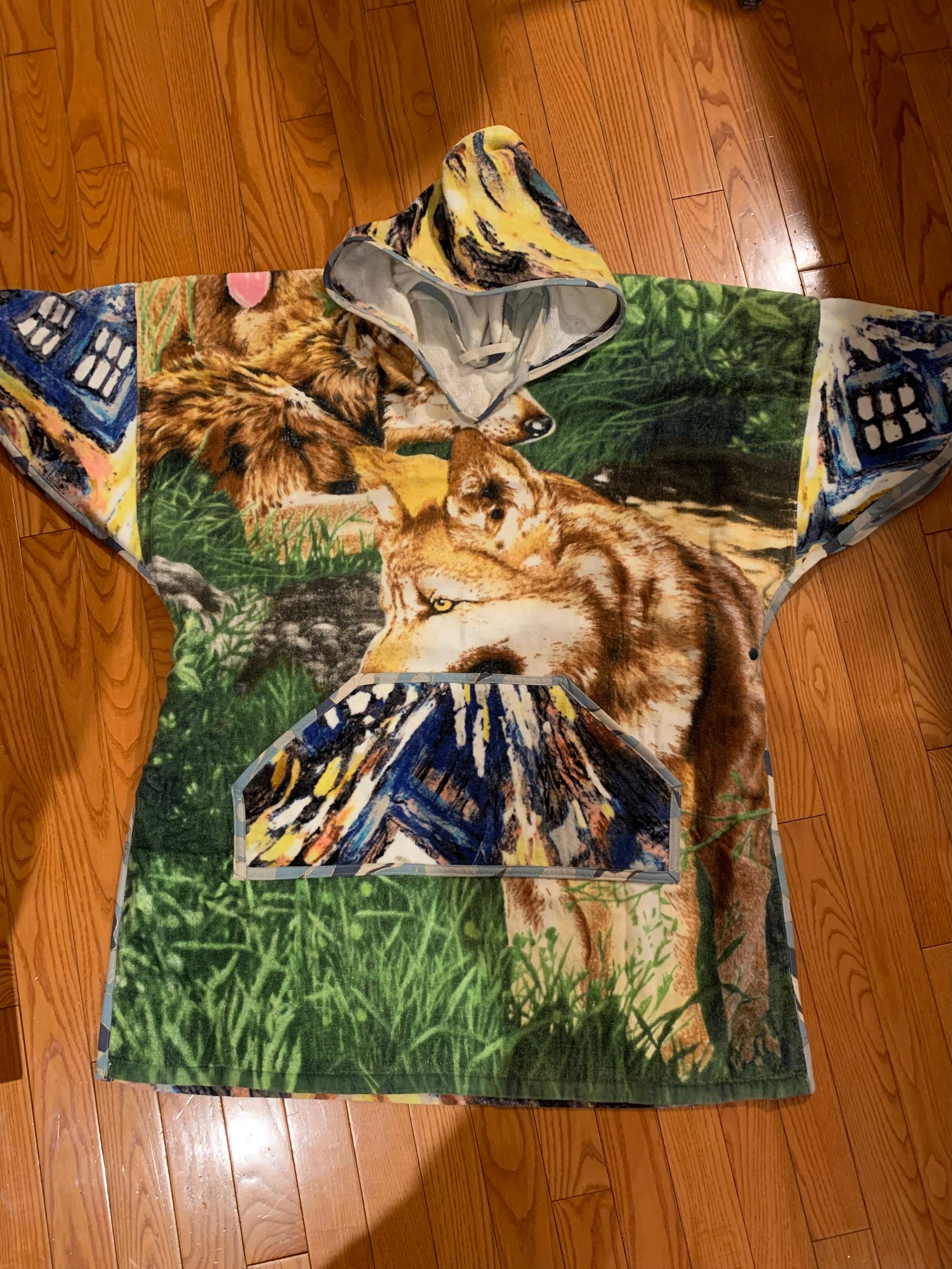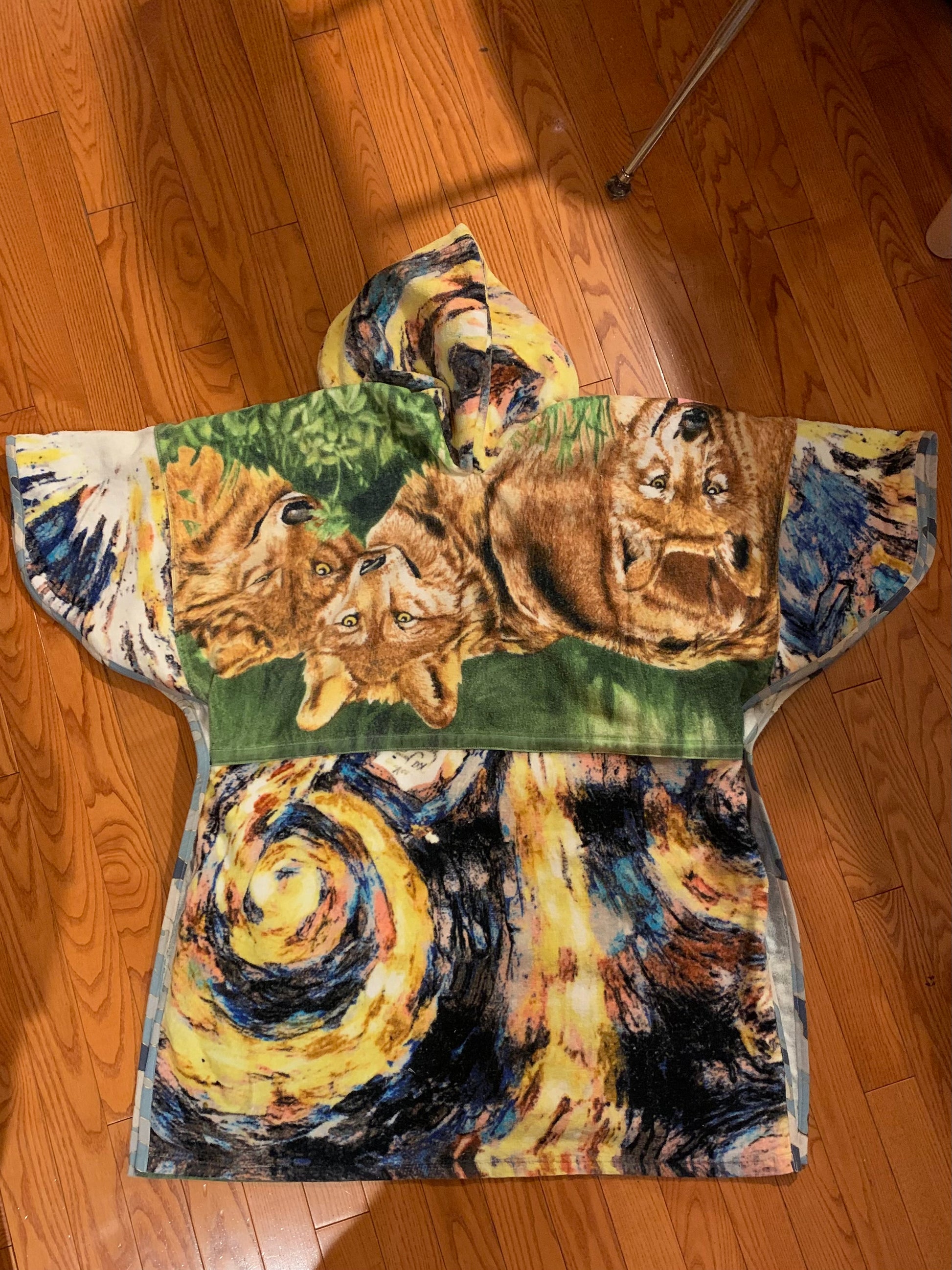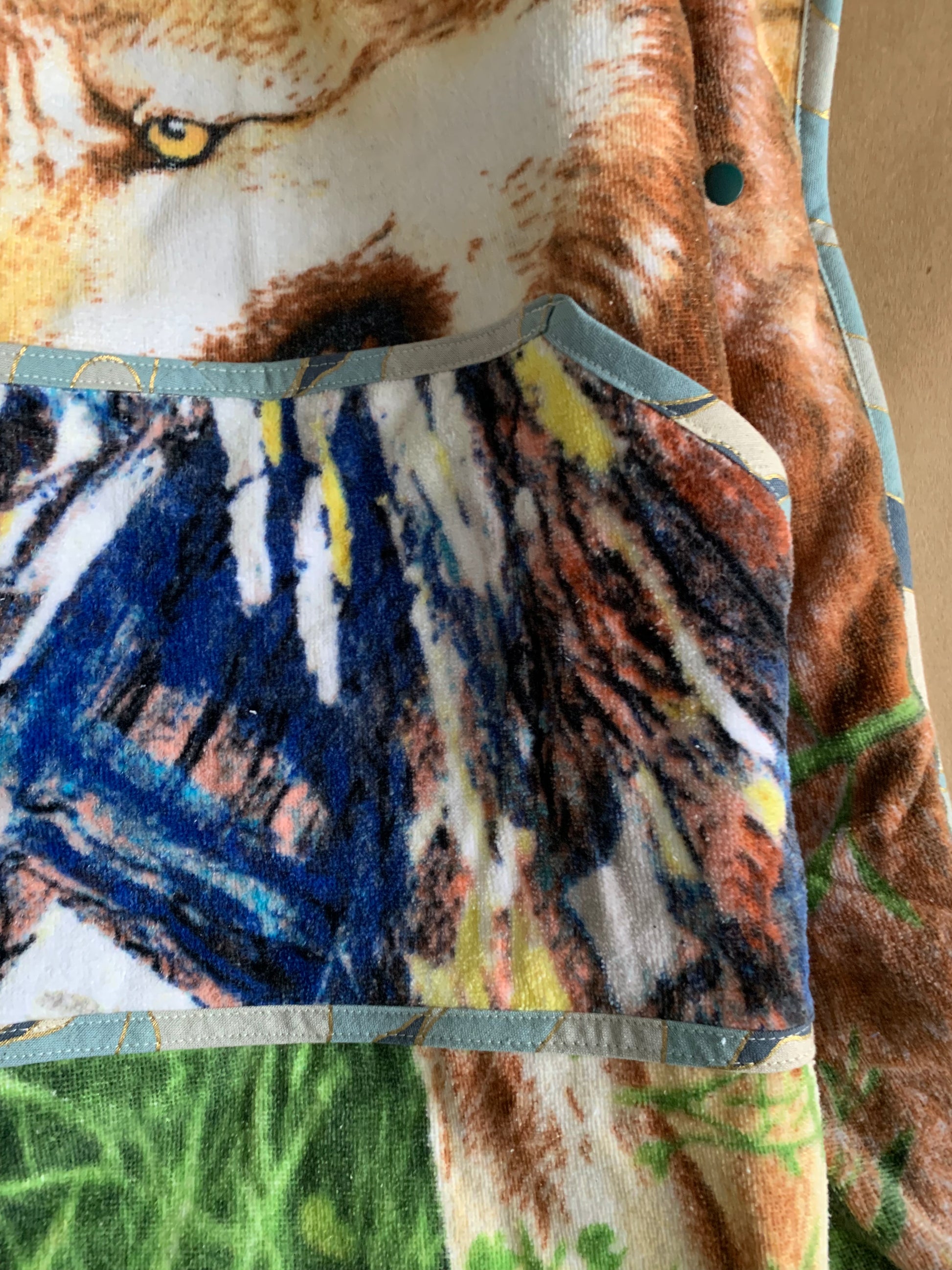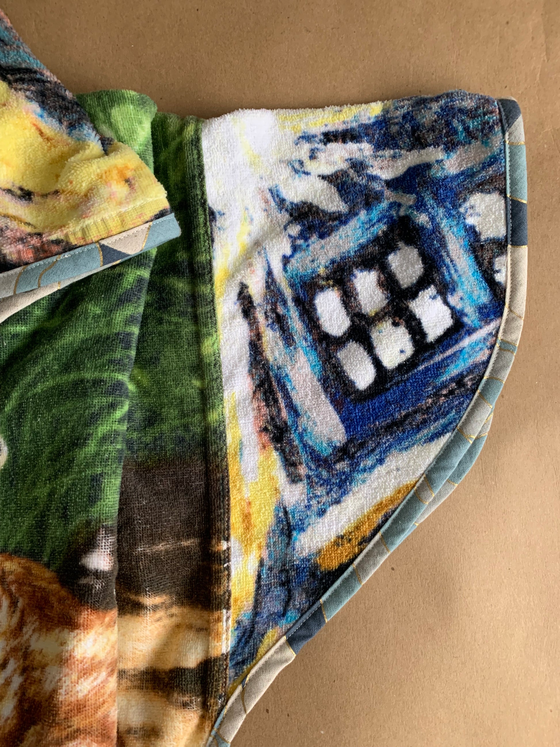 Upcycled hooded towel ponchos with kangaroo pocket and side snaps for the adults have arrived. These totally unique one of a kind summer staples are made in collaboration with Amanda from TOKKI and are perfect for the beach, the cottage, or the indoor pool.