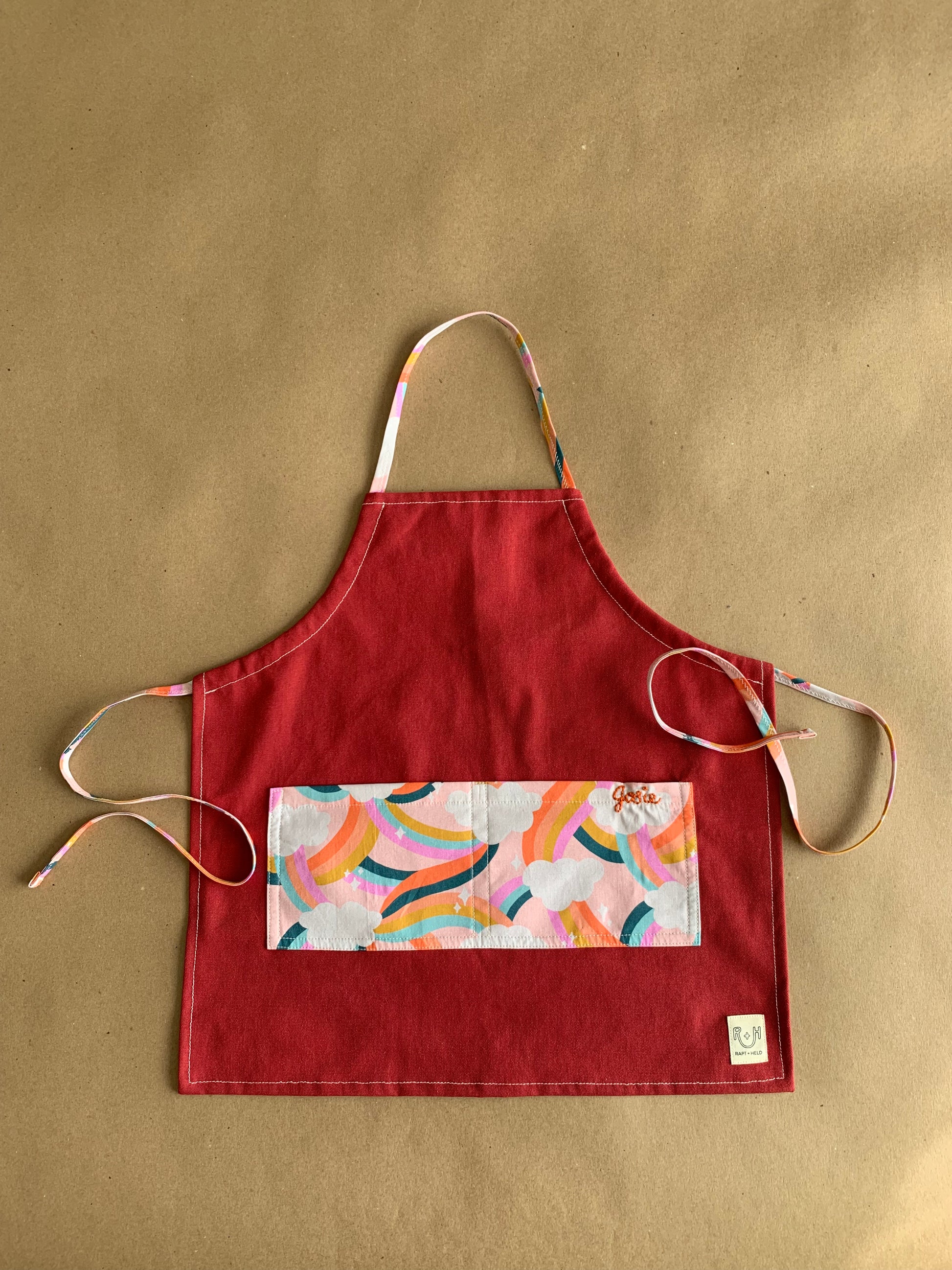 After many years of ordering from Rapt and Held, the indecision in me has given in to allowing Logan take the reins on fabrics and her artistic and creative eye does not disappoint. She made an apron for my daughter so she can be part of the Rapt and Held kitchen club with her brother. The fabrics are such great quality and the design is well thought out. Room to grow with long and adjustable string, a loop for hanging and the most beautiful hand stitched name. 10/10 always recommend anything I purchase from Logan. Whenever my kids wear her creations we get so many genuine compliments.