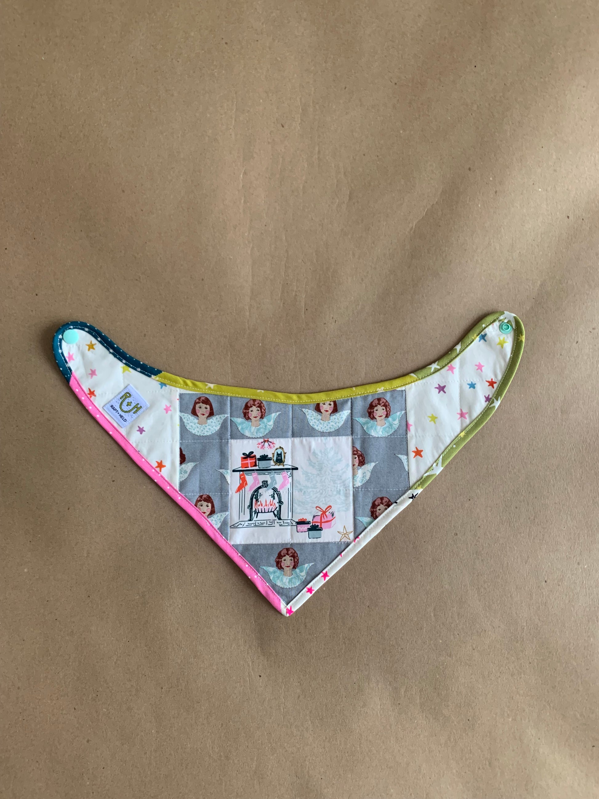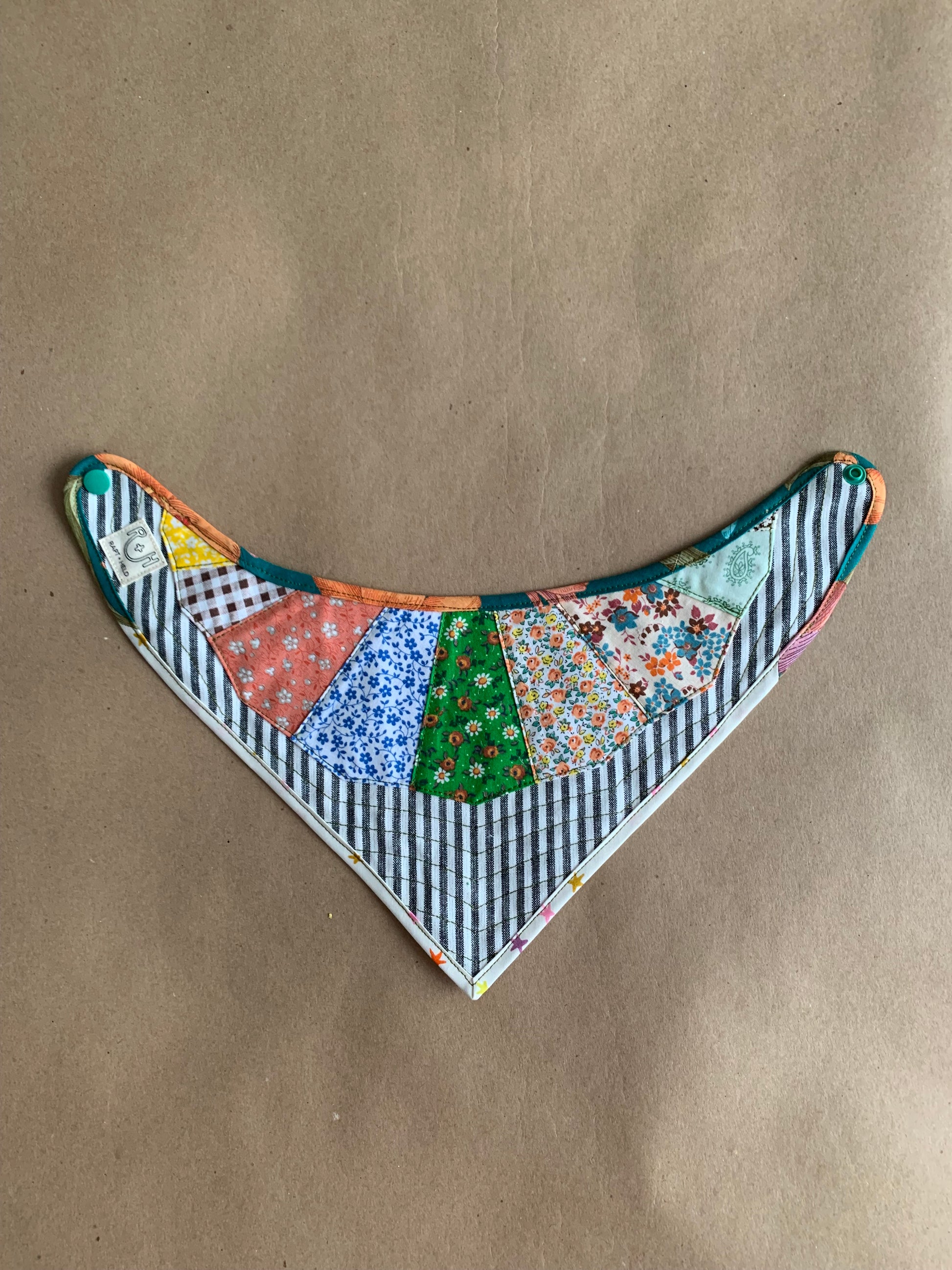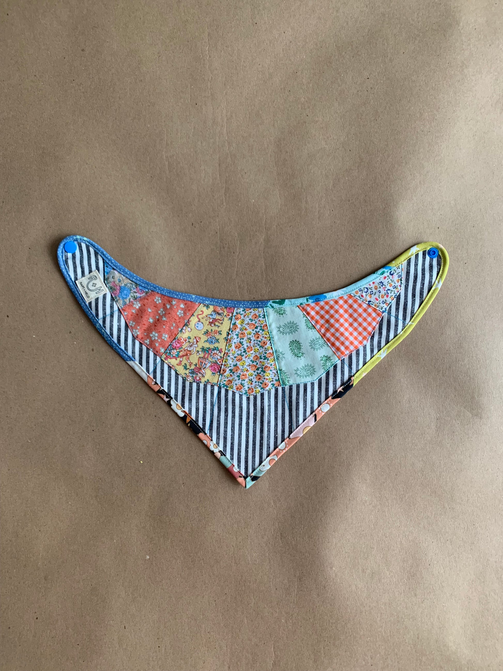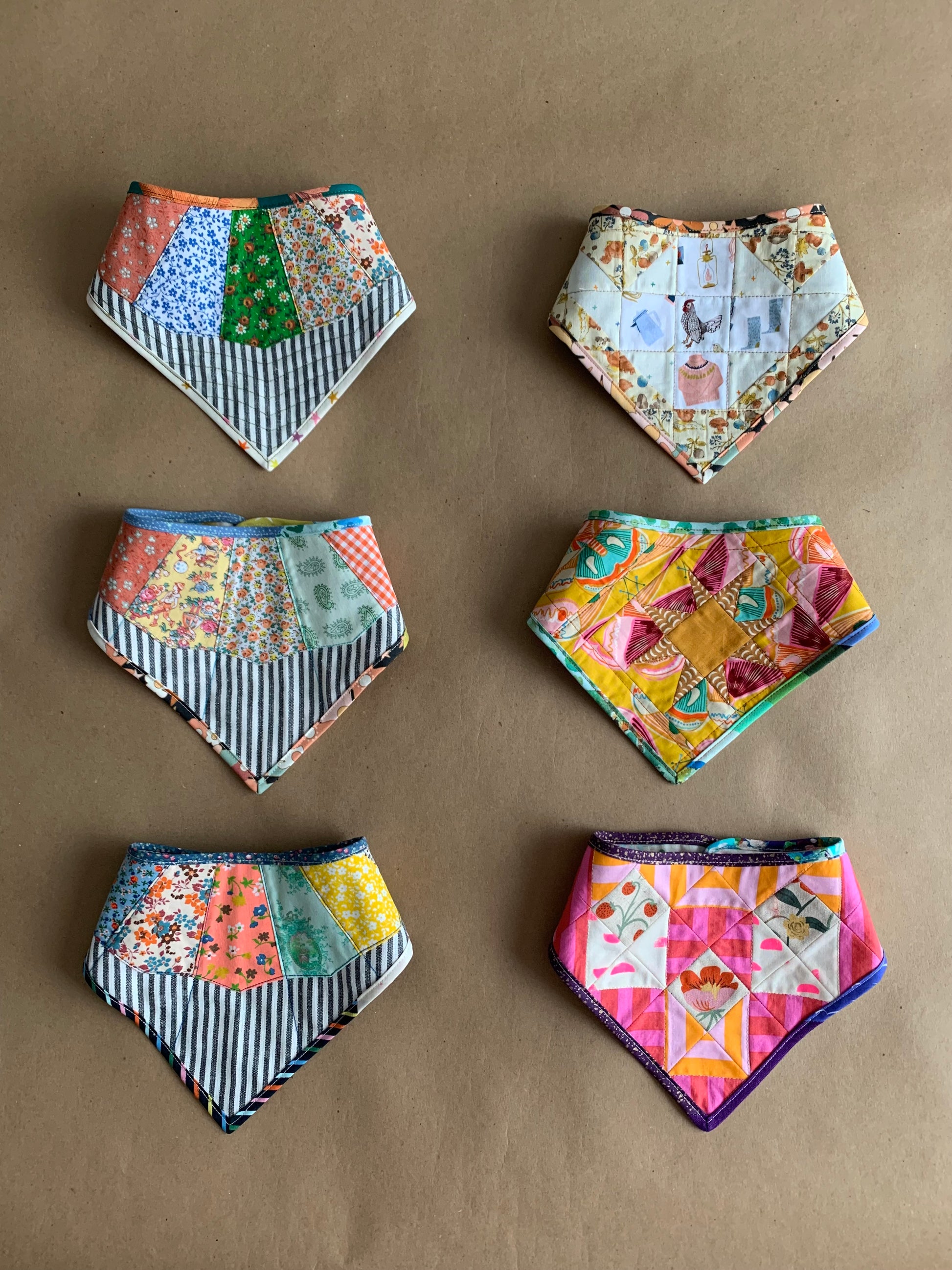 The perfect accessory for any occasion, whether you’re a dribbler, a trendsetter, or just perpetually cold, these cotton flannel backed neckerchiefs are the perfect marriage between fashion and function. And made from remnants and leftovers from my stash, they are as close to zero waste as you can get. They are also totally reversible so you basically get two for the price of one with every order. With a snap closure at the back they are secure but also easily put on and taken off by the most independent kiddo.