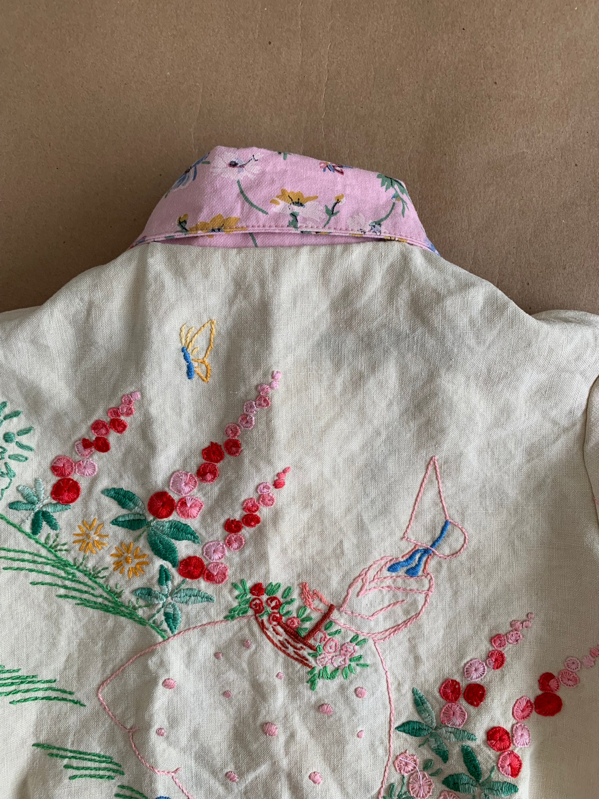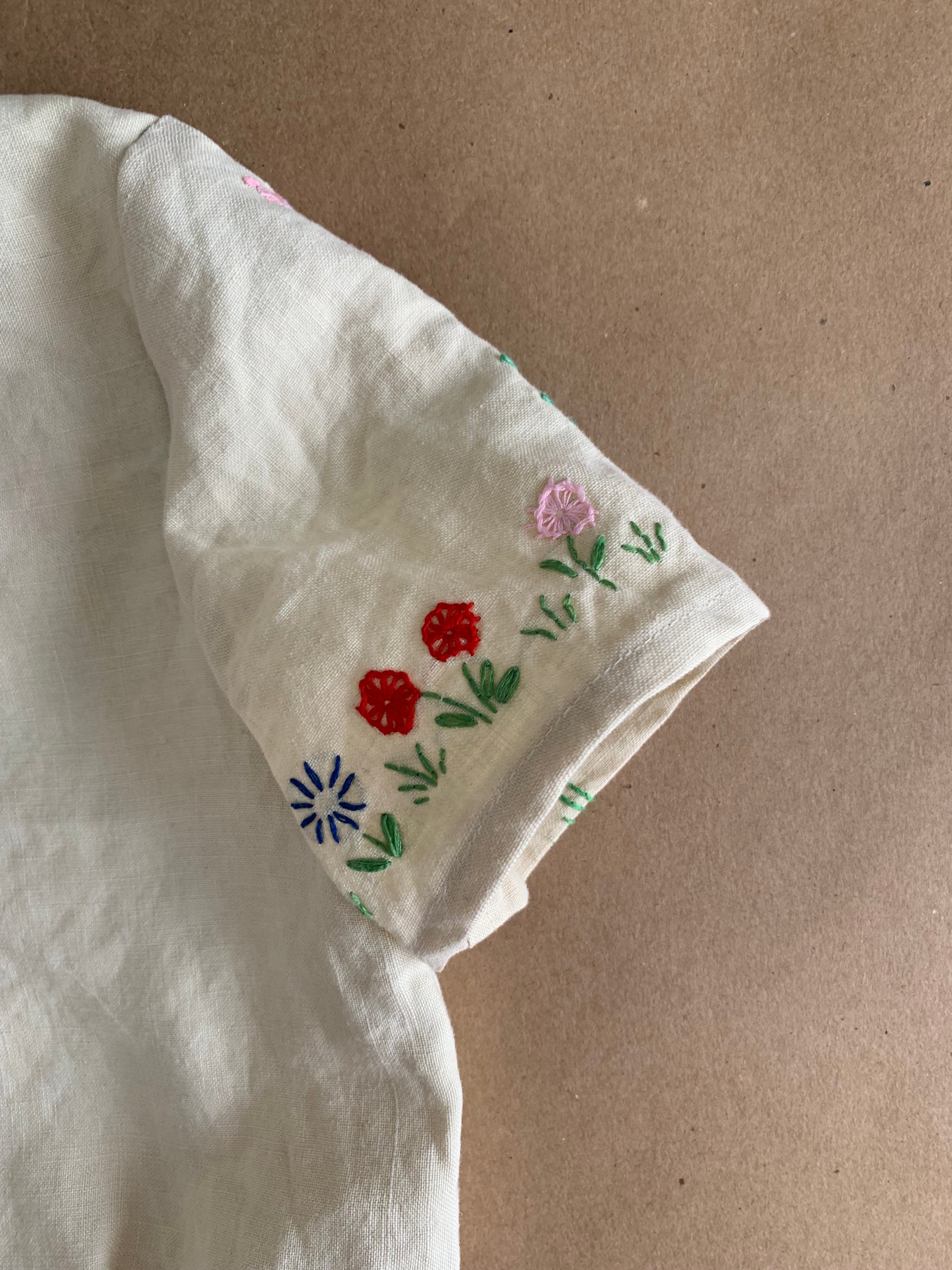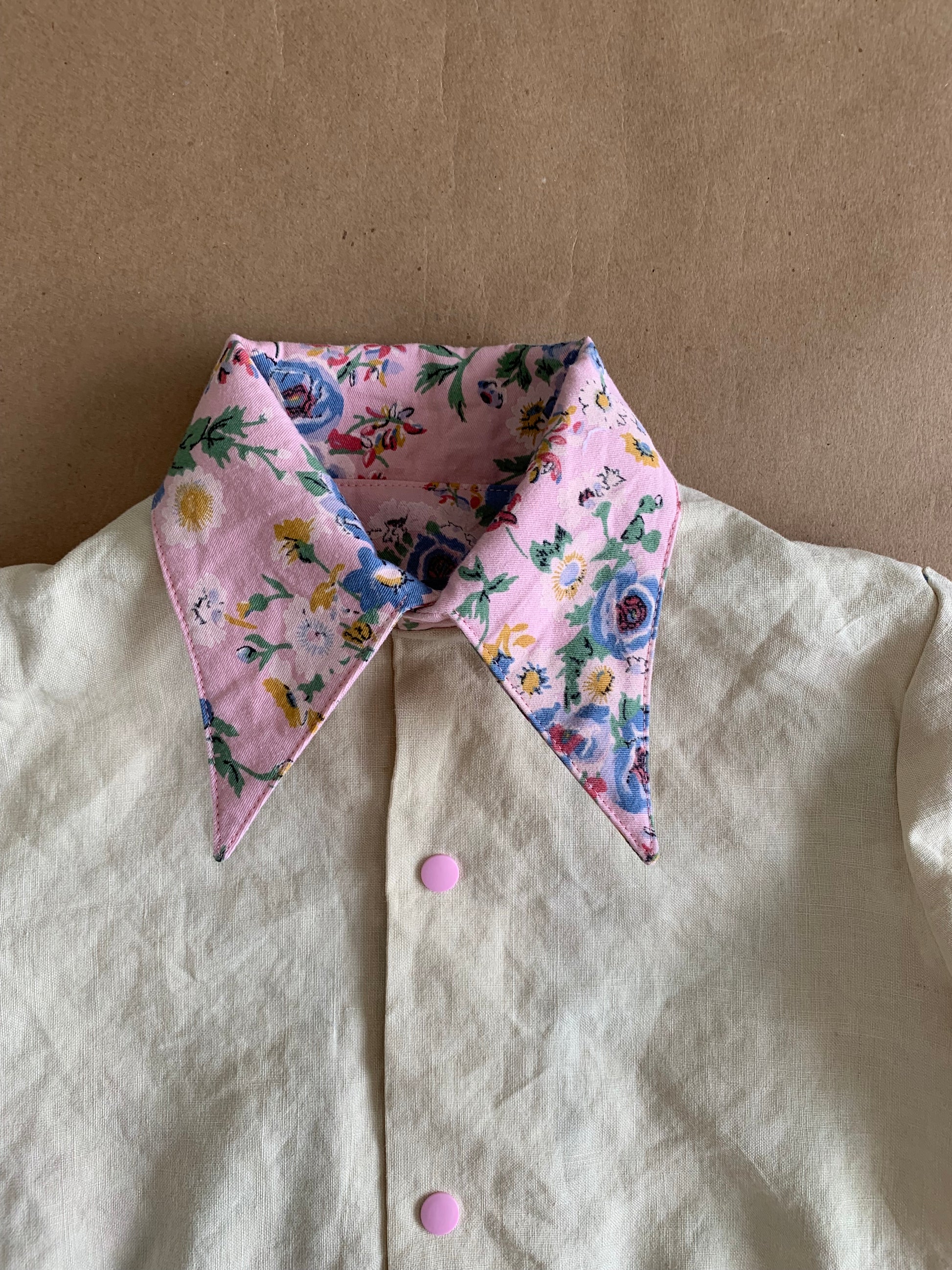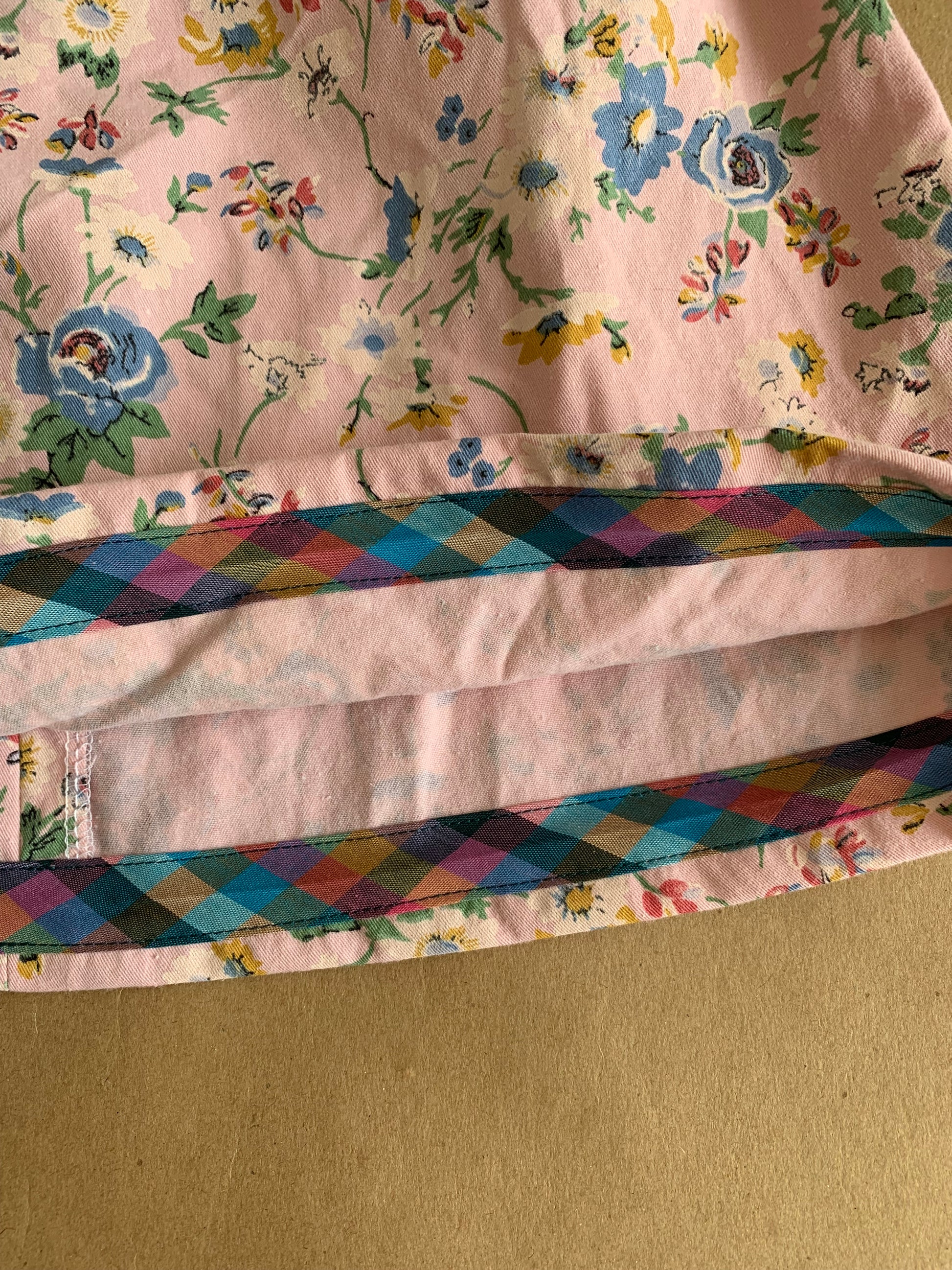 This charming two piece set would be the absolute perfect back to school look for the discerning 8 yr old! Made from a selection of thrifted linens and prints from my dear friend Sarah of Brim Shoppe, and based on a 1970s vintage pattern, this structured top and coordinated shirt is an absolute dream! The shirt can be worn on its own, or open over a tank top, simple dress or turtleneck and the shirt is slightly a-line with an elasticated waistband and zipper closure at the back. Who wouldn't want to rock up to the first day of school in this?!